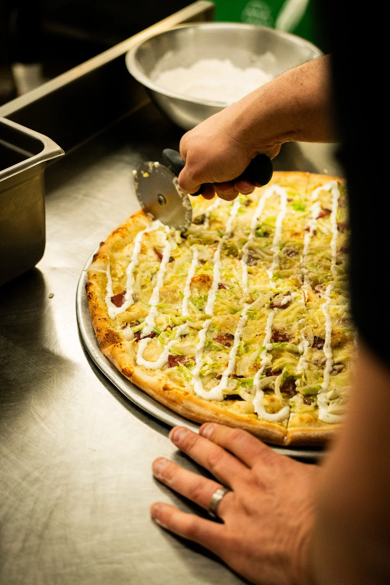 The rumor has it that at the end of the rainbow is a pot of gold. Well, we took a look for ourselves and it turns out it’s actually a pot of mustard-shallot cream sauce! So naturally, we took it and made the Corned Beef & Cabbage pizza. Built on a rich mustard-shallot cream sauce with mozzarella, tender corned beef, sautéed cabbage, and Irish white cheddar, it’s finished with a cool dill cream drizzle that ties everything together. This resurrected favorite is back just in time for St. Paddy’s day, and is available by the slice or whole pie all month long — but only while March lasts.